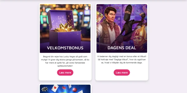 Vores kampagner er bygget op omkring enkle vilkår og tilbud, der passer til reelle spillevaner i Danmark. Nye spillere kan få en velkomstpakke, mens faste brugere kan få adgang til daglige tilbud, præmieværktøjer og slotkonkurrencer. Vi har også en VIP-struktur til langvarigt spil hos LuckyVegas Casino.
