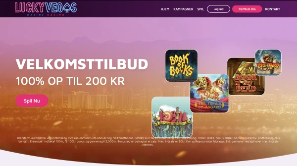Den primære LuckyVegas bonus til Danmark er et 100% velkomsttilbud op til 1.000 DKK. Minimumsindbetalingen er 100 DKK, og omsætningskravet er 10x af den samlede indbetaling og bonus. Der er ingen kampagnekode angivet for dette tilbud i de tilgængelige vilkår, så spillere kan typisk aktivere det ved indbetaling, hvis de er berettigede. Vi angiver ikke en separat sportsbook-velkomstpakke til Danmark her, så det tilgængelige første tilbud er kun til casino. Nogle spillere søger efter en LuckyVegas casino bonus uden indbetaling, men der er ikke bekræftet noget no-deposit-velkomsttilbud i de nuværende danske vilkår.